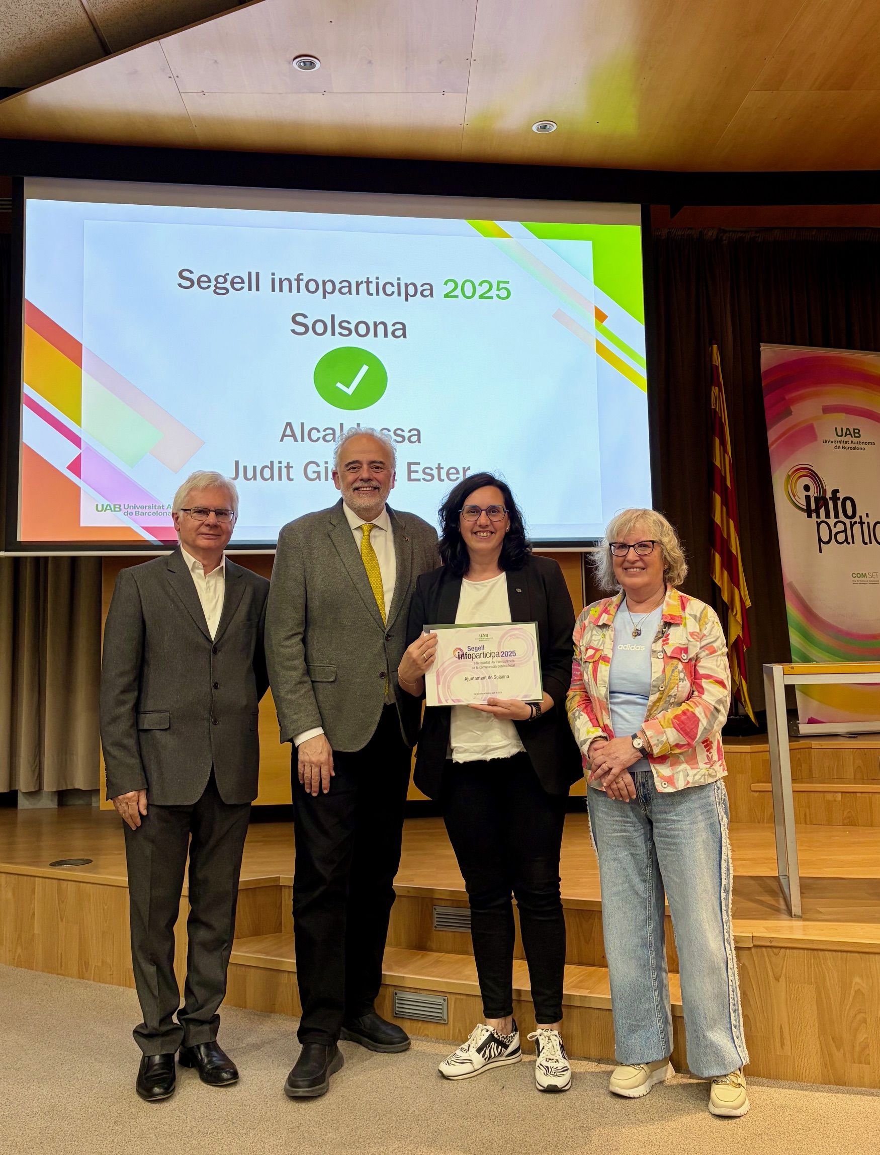 Ahr dimarts 14 d’abril, l’alcaldessa de Solsona, Judit Gisbert, va rebre oficialment aquesta distinció durant un acte celebrat al Rectorat de la UAB presidit pel rector Javier Lafuente. En aquesta convocatòria, el consistori solsoní ha complert satisfactòriament 50 dels 54 indicadors analitzats, situant-se entre els 124 ajuntaments catalans, que representen aproximadament un 13% del total dels municipis a Catalunya, que han assolit aquest certificat. A més, Solsona és un dels quatre municipis distingits a la demarcació de Lleida i ocupa el segon lloc en puntuació dins aquesta zona.