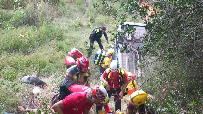 En el dispositiu de rescat hi han participat sis dotacions dels Bombers, que han coordinat les tasques d’excarceració i evacuació. L’actuació ha requerit tècniques de rescat en alçada i una acurada maniobra per garantir tant la seguretat de l’accidentat com la dels efectius que treballaven en el terraplè.