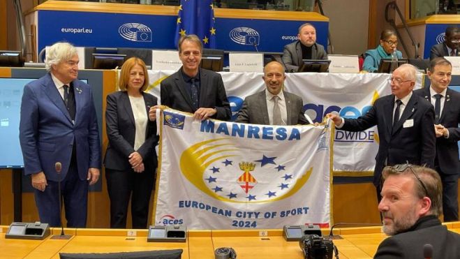 Manresa ha rebut aquest dijous a Brussel·les la bandera que l’acredita com a Ciutat Europea de l’Esport 2024, en una gala que s’ha celebrat al Parlament Europeu que ha comptat amb la presència de l’alcalde de Manresa, Marc Aloy Guàrdia, i del regidor d’Esports, Anjo Valentí Moll. Amb l’entrega del guardó, l’Associació de Capitals i Ciutats Europees de l’Esport (Aces Europe) ha fet oficial la distinció, que reconeix a la ciutat de Manresa el seu bagatge en la promoció de la salut i l’esport i que permetrà a la ciutat desplegar durant el 2024 un ampli programa de foment de l’activitat física.