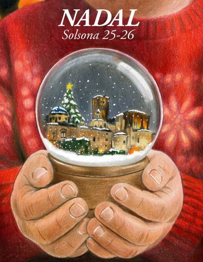 La il·lustració d’Isa Martínez també és la coberta de l’agenda de Nadal de Solsona, que es pot descarregar en línia en aquest enllaç. Aquesta programació, fornida per entitats, institucions locals i escoles, recull una cinquantena llarga d’actes per a tots els públics, entre els quals hi ha concerts i cantades de nadales, representacions d’Els Pastorets i exposicions.