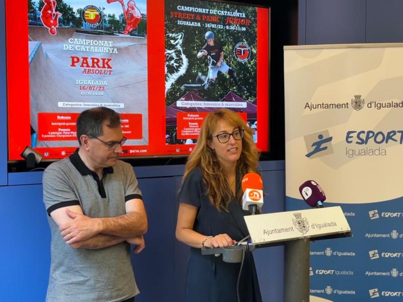 La regidora d’Esports de l’Ajuntament d’Igualada, Patrícia Illa, acompanyada del president de la Federació Catalana de Patinatge, Benjamí Pons, ha presentat les dues competicions que es realitzaran durant tot el matí. El campionat Júnior es realitzarà de les 8.30h a les 11.30h i de les 11.30h fins a les 14h s’efectuarà el campionat absolut.