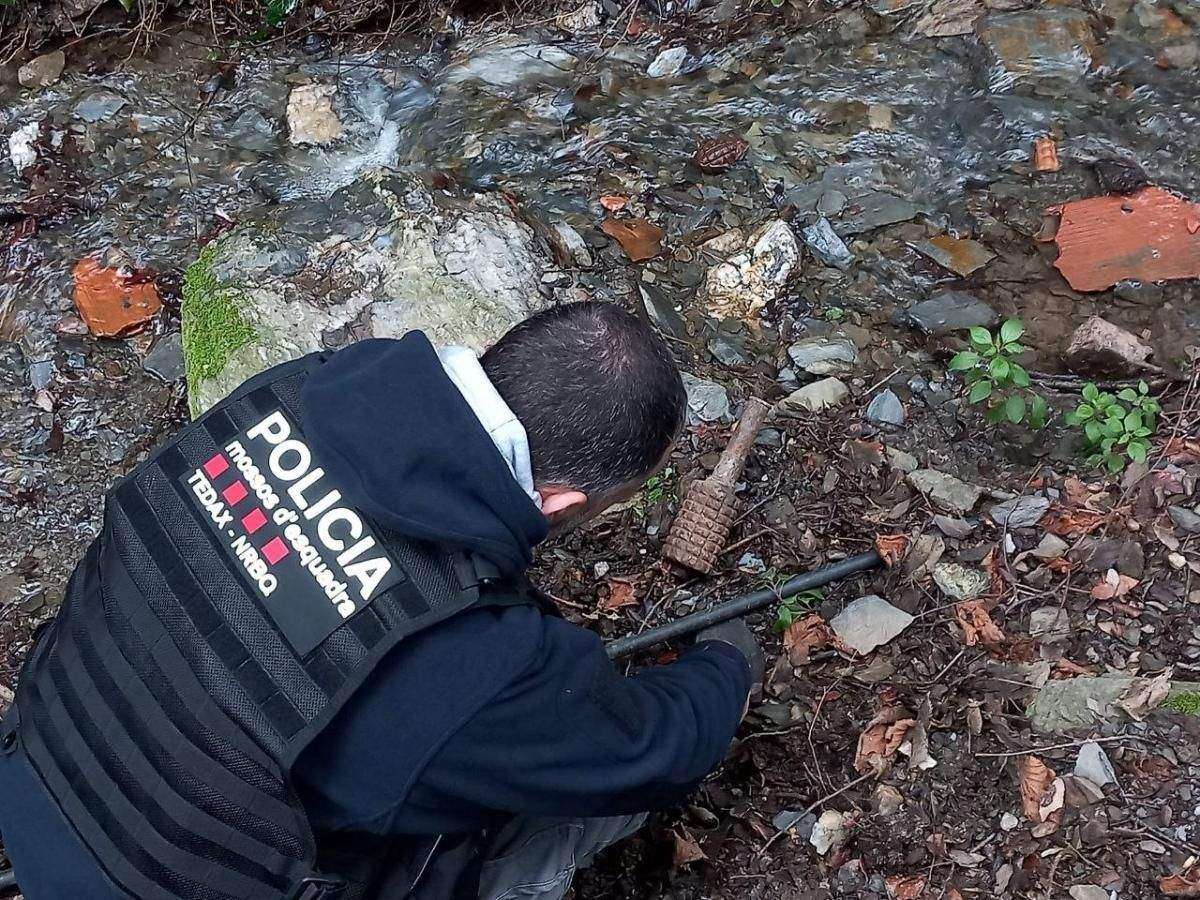 Els Mossos d'Esquadra han assegurat 15 granades de mà i 7 de morter localitzades aquest dimecres a la tarda a una riera de Piera (Anoia).