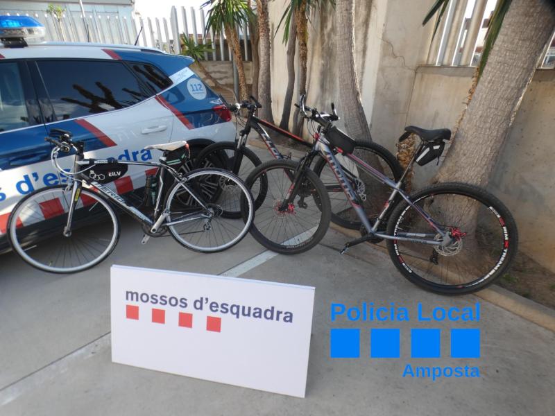 La Policia Local d'Amposta va detenir un veí de la ciutat de 28 anys com a presumpte autor del robatori de quatre bicicletes. Els fets es van produir als volts de la quatre de la matinada de dimecres passat. L'individu circulava amb una bicicleta i va aixecar sospites en fer una maniobra evasiva davant una patrulla policial.