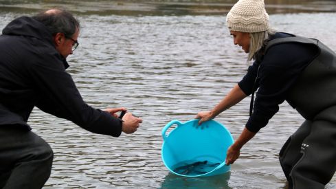 Com s'ha fet els últims dos anys per aquestes dates, l'IDECE i el CERM han tornat a alliberar a Tivenys (Baix Ebre) uns quants dels esturions criats a França en el marc del programa de reintroducció d'aquesta espècie al riu Ebre.