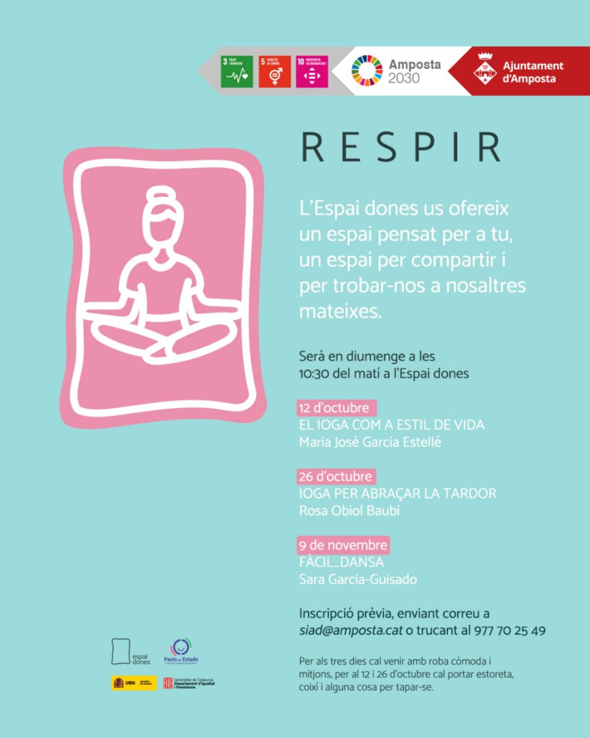 L’Espai Dones, de l’Ajuntament d’Amposta posa en marxa el cicle Respir, una proposta pensada per oferir a les dones un espai per cuidar-se, compartir experiències i retrobar-se amb elles mateixes. Aquestes sessions quinzenals es desenvoluparan en diumenge al matí, a les 10.30 h, a l’Espai Dones, i combinen activitats de ioga i dansa amb una mirada cap al benestar integral i la connexió personal.