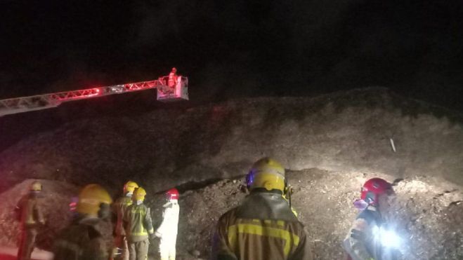 El foc va afectar aproximadament uns 100 metres quadrats d’una pila de fusta reciclada que forma part d’un espai d’emmagatzematge d’unes dues hectàrees d’extensió.