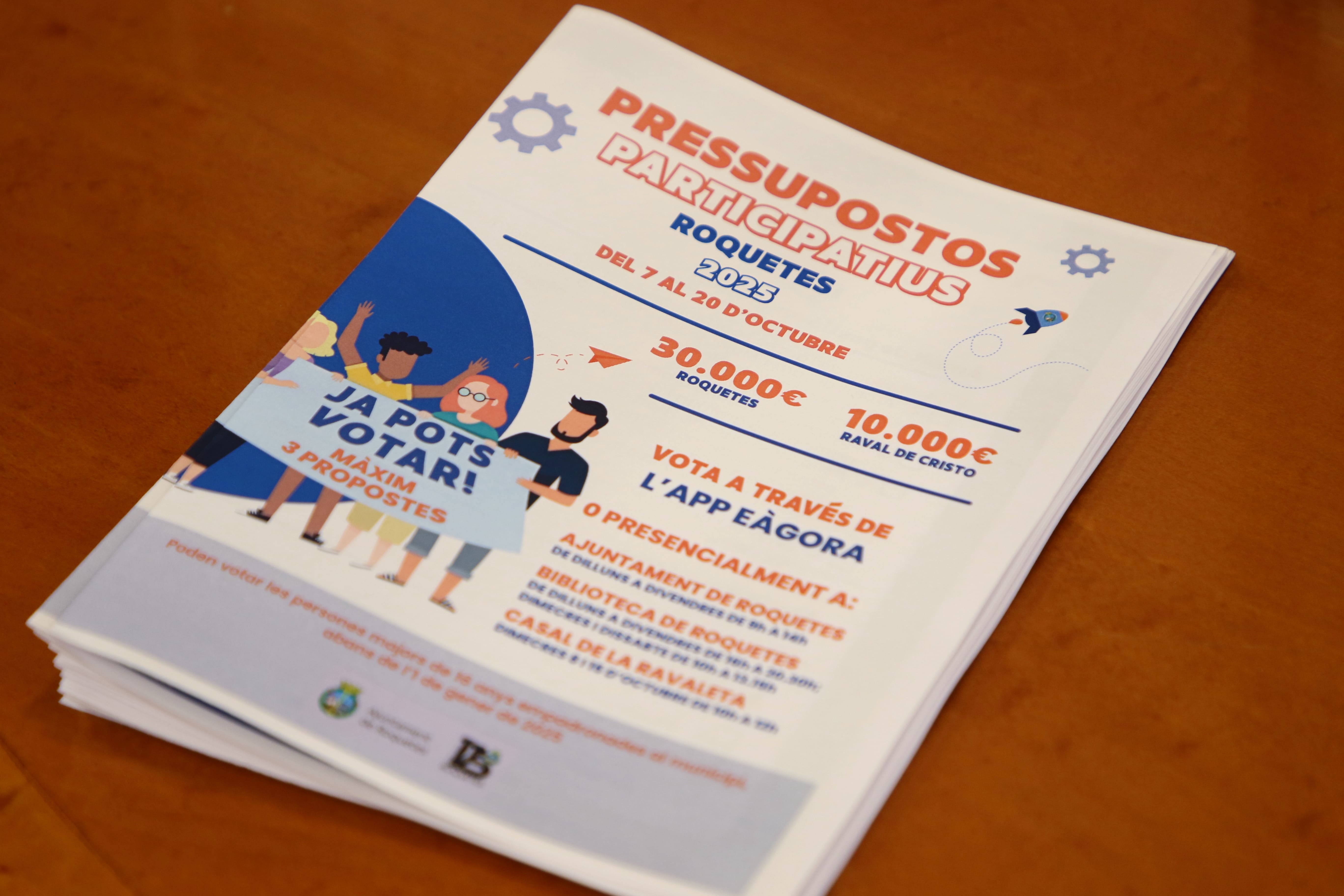 Els roqueteros i roqueteres decideixen. Roquetes inicia les votacions dels pressupostos participatius 2025, en què la ciutadania elegeix les inversions on vol que es destinin part dels recursos econòmics municipals. La fase de votació arrenca avui dimarts 7 d’octubre, i s’allargarà fins el proper dilluns dia 20, període durant el qual cada persona pot escollir un màxim de 3 propostes, d’entre un total de 22 finalistes.