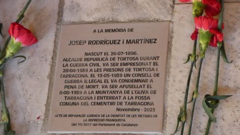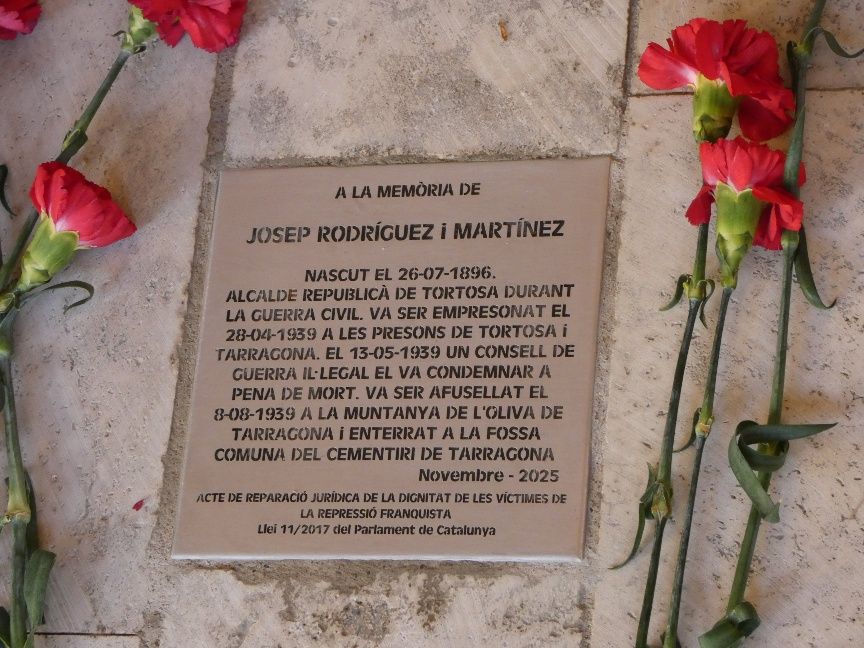 Tortosa col·loca una llamborda de la memòria a l’alcalde republicà, Josep Rodríguez, afusellat pel règim franquista