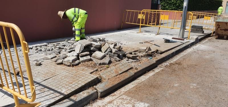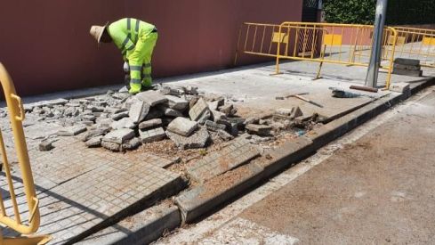 En marxa, les obres d'arranjament de les voreres de la rambla Pompeu Fabra, al barri de Ferreries