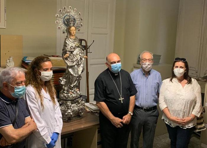 La imatge va marxar de Tortosa el passat 5 de març però el decret d'estat d'alarma per la Covid-19 va enrederir tota la planificació dels experts restauradors. L'acció ha estat promoguda pel Capítol Catedral i pel Bisbat de Tortosa i sufragada per la Reial Arxiconfraria de la Mare de Déu de la Cinta i el suport de la Cort d'Honor.