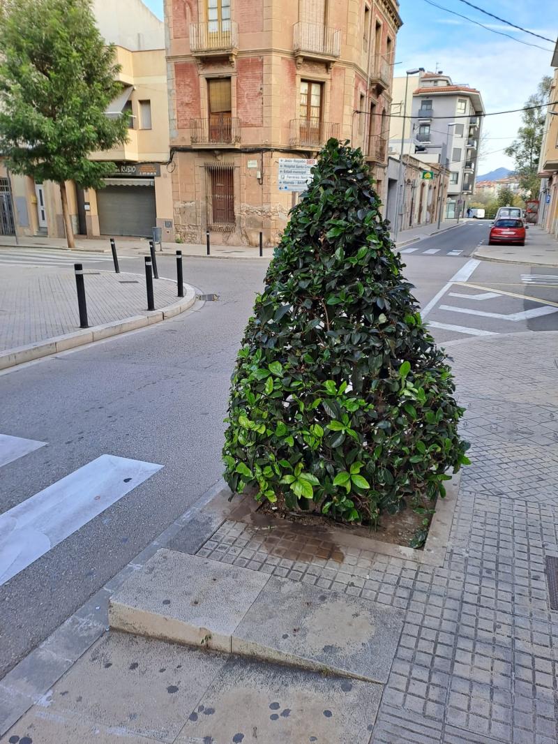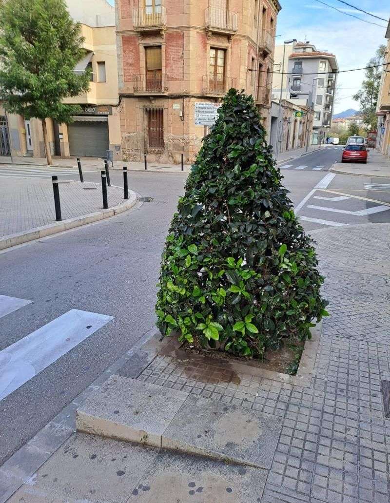 Es tracta d'uns arbres de l'espècie 'Viburnum odoratissimum' que resten totalment la visibilitat tant dels vianants que volen travessar el carrer des de la vorera, com dels vehicles que circulen per la calçada.