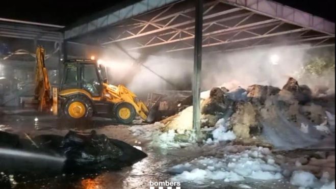 En arribar al lloc, els bombers van prioritzar la retirada dels camions propers a l'incendi i van confinar la zona per reduir la càrrega de foc. Amb l'ajuda d'una màquina retroexcavadora, van treballar per remoure la pila de sacs i facilitar les tasques d'extinció.
