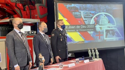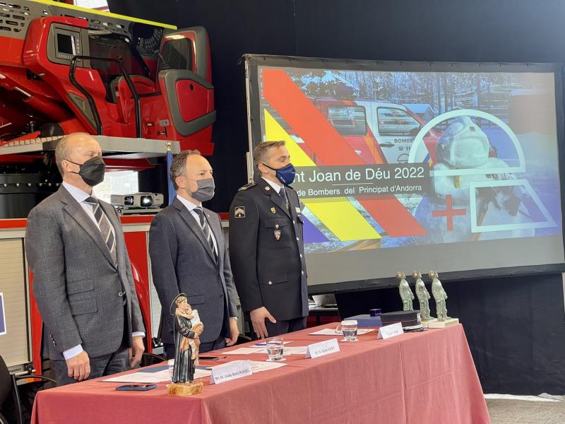 El cap de Govern, Xavier Espot, i el ministre de Justícia i Interior, Josep Maria Rossell, han expressat la seva satisfacció per poder tornar a celebrar la festivitat de Sant Joan de Déu, patró del Cos de Bombers. Una jornada, han coincidit tots dos, per reconèixer la vocació de servei públic i els valors d'esforç, solidaritat i treball en equip d'aquest cos especial.