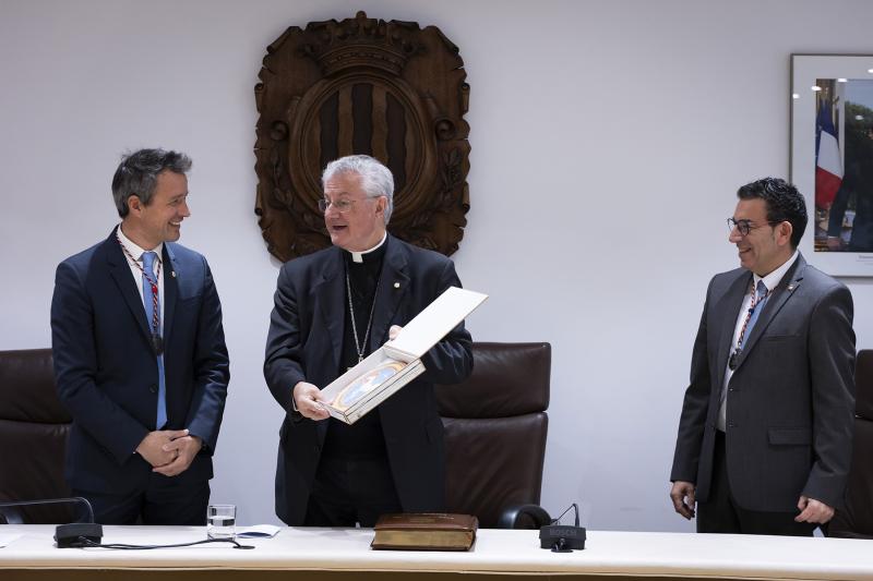 L’arquebisbe-bisbe d’Urgell i Copríncep Episcopal, Joan Enric Vives, ha tancat avui la visita pastoral que ha fet durant aquest mes de novembre a Andorra la Vella amb una visita oficial al Comú. El Copríncep ha estat rebut pels cònsols major i menor, David Astrié i Miquel Canturri, a l’arribada a la Casa comuna i posteriorment, a la sala de Consell de Comú ha mantingut una trobada amb els membres de la corporació, on també han assistit la ministra de Presidència, Economia, Treball i Habitatge, Conxita Marsol, i la consellera general Sílvia Riva.