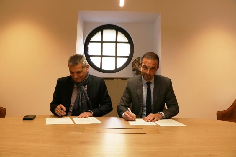 El president del Consell d’Administració d’Andorra Telecom, Jordi Torres i El President d’Arteria, Gilles Calligaro, han signat avui el conveni per disposar d’una nova línia internacional amb sortida per França. Aquesta nova línia la proveeix Arteria, una empresa 100% filial de RTE (Réseau de Transport d'Electricité), que presta serveis als operadors i proveïdors d'Internet a través d’infraestructures d'alta velocitat.
