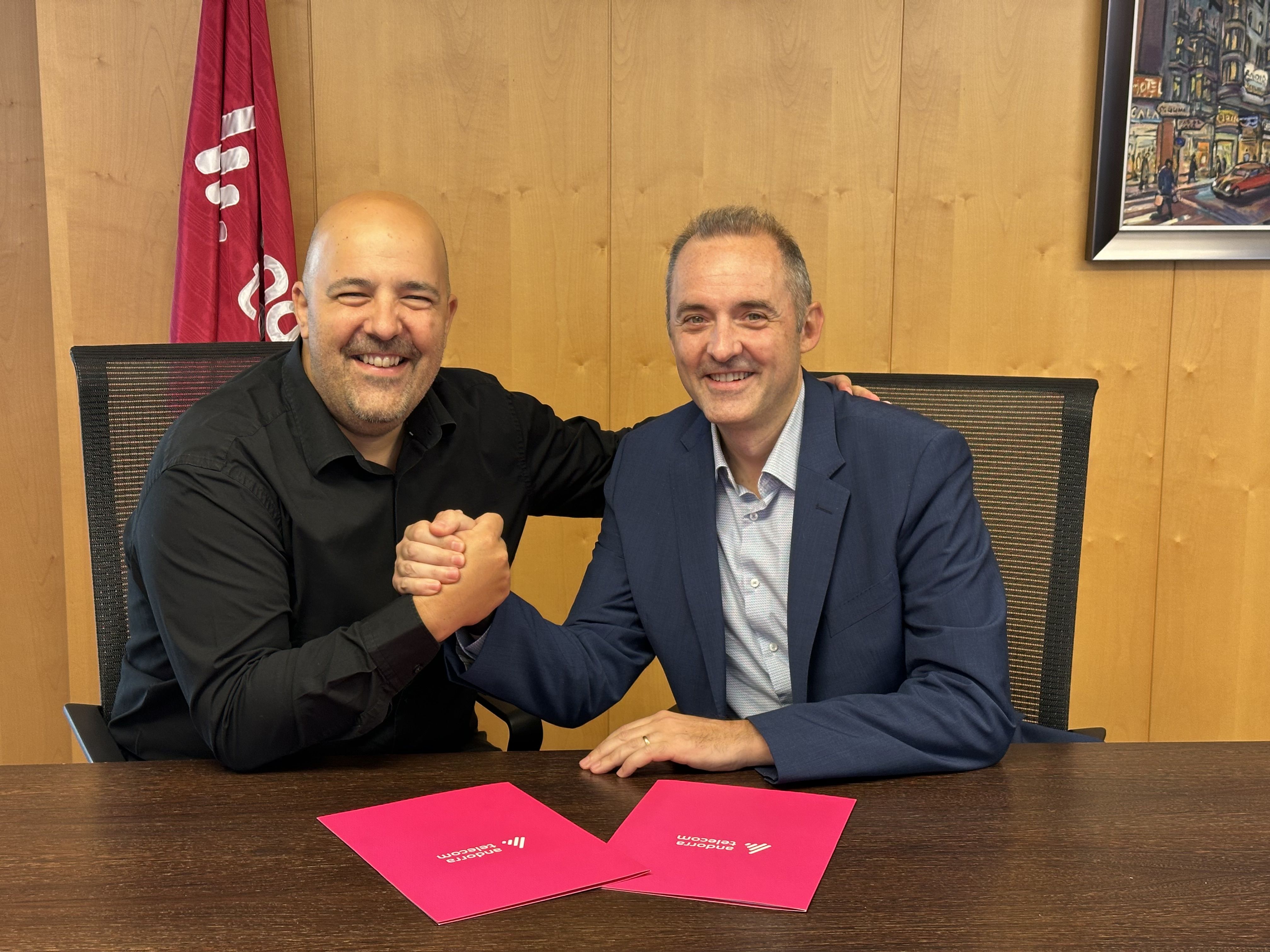 El director general d’Andorra Telecom, Jordi Nadal, i el president del Bàsquet Club MoraBanc Andorra, Gorka Aixàs, han signat aquest dijous el conveni de renovació del patrocini per a la temporada 2025-2026. Durant aquests anys la relació entre ambdues entitats s’ha anat consolidant i enfortint, compartint la transmissió de valors i de responsabilitat social empresarial. Un bon exemple d’aquesta col·laboració és l’adhesió per part dels equips de la base a la campanya ‘Un mòbil, un pacte’ d’Andorra Telecom, que estarà vigent també aquesta temporada.