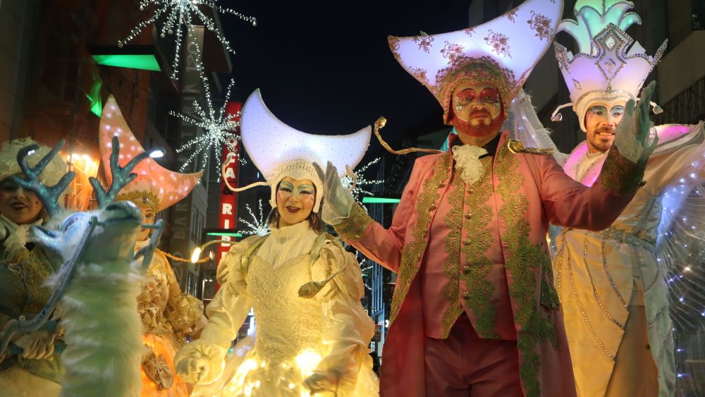 Els cònsols majors d'Andorra la Vella i Escaldes-Engordany, Sergi González i Rosa Gili, han estat novament els encarregats d'inaugurar la festa. Tot just després d'encendre la il·luminació, s'ha donat pas a l'espectacle itinerant 'Night of light', de la companyia Stelzen Art, que s'ha clos a la plaça Príncep Benlloch, per donar pas a la inauguració oficial del Poblet de Nadal.