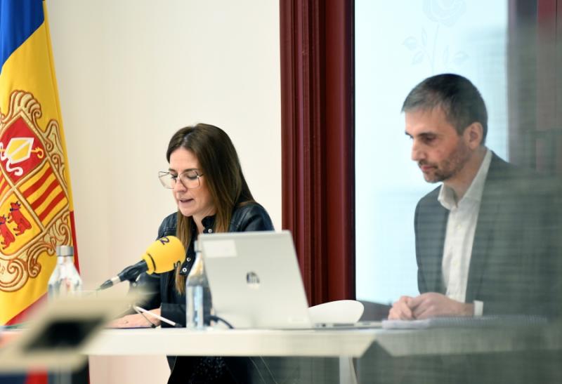 La ministra de Cultura i Esports, Sílvia Riva, i el coordinador de l’eix sociològic d’Andorra Recerca i Innovació (ARI), Joan Micó, han presentat els resultats de la nova enquesta del 2022 de Coneixements i usos lingüístics de la població d’Andorra.