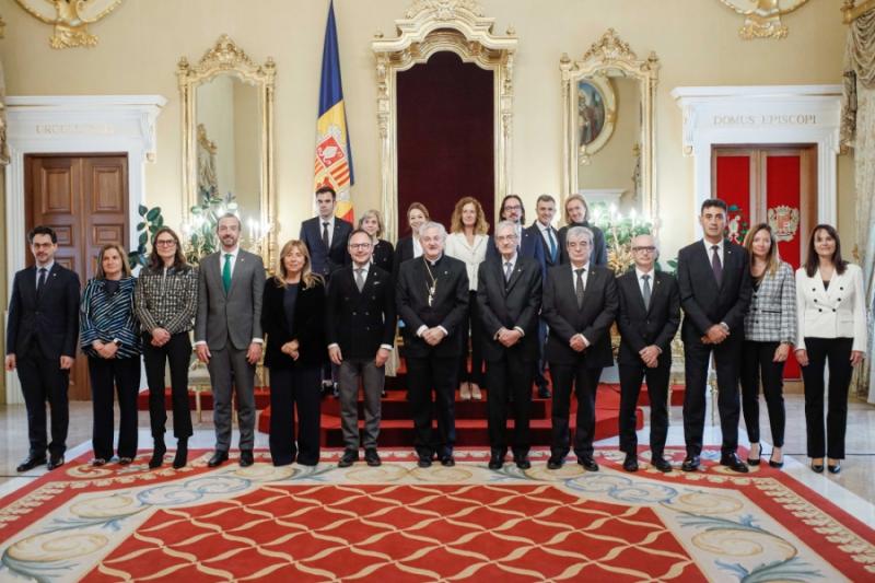 El cap de Govern d'Andorra, Xavier Espot, juntament amb tot el nou equip de Govern que configuren el Consell de Ministres, s’ha reunit aquest dilluns a la tarda amb el copríncep episcopal, Joan-Enric Vives.