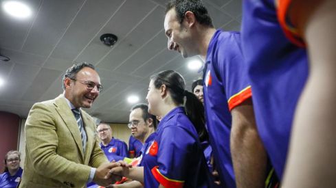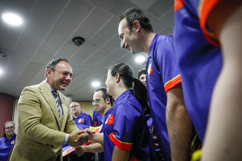 El cap de Govern, Xavier Espot; la ministra de Cultura, Joventut i Esports, Mònica Bonell, i el secretari d’Estat d’Esports, Alain Cabanes, han rebut aquesta tarda la delegació dels Special Olympics que representarà Andorra a Berlín.