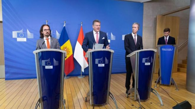 El Vicepresident de la Comissió Europea, Maroš Šefčovič, ha rebut aquest dijous a Brussel·les als caps negociadors de l’Acord d’associació d’Andorra, Mònaco i San Marino, per establir un full de ruta compartit que permeti tancar les negociacions amb la Unió Europea a finals del 2023. Aquest document estratègic conté un programa ambiciós amb consideracions específiques per a cada país i una previsió temporal per als pròxims divuit mesos.