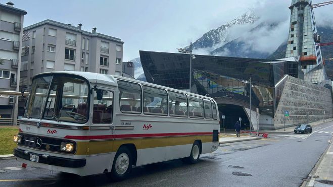 El protagonista d’aquesta presentació és un Mercedes-Benz O302 de 1965, un dels models més representatius que van circular durant dècades per les carreteres d’Andorra. El vehicle ha estat sotmès a un minuciós procés de restauració de prop d’un any a Espanya, amb l’objectiu de recuperar la seva essència original i tornar-lo a posar en circulació en plenes condicions.