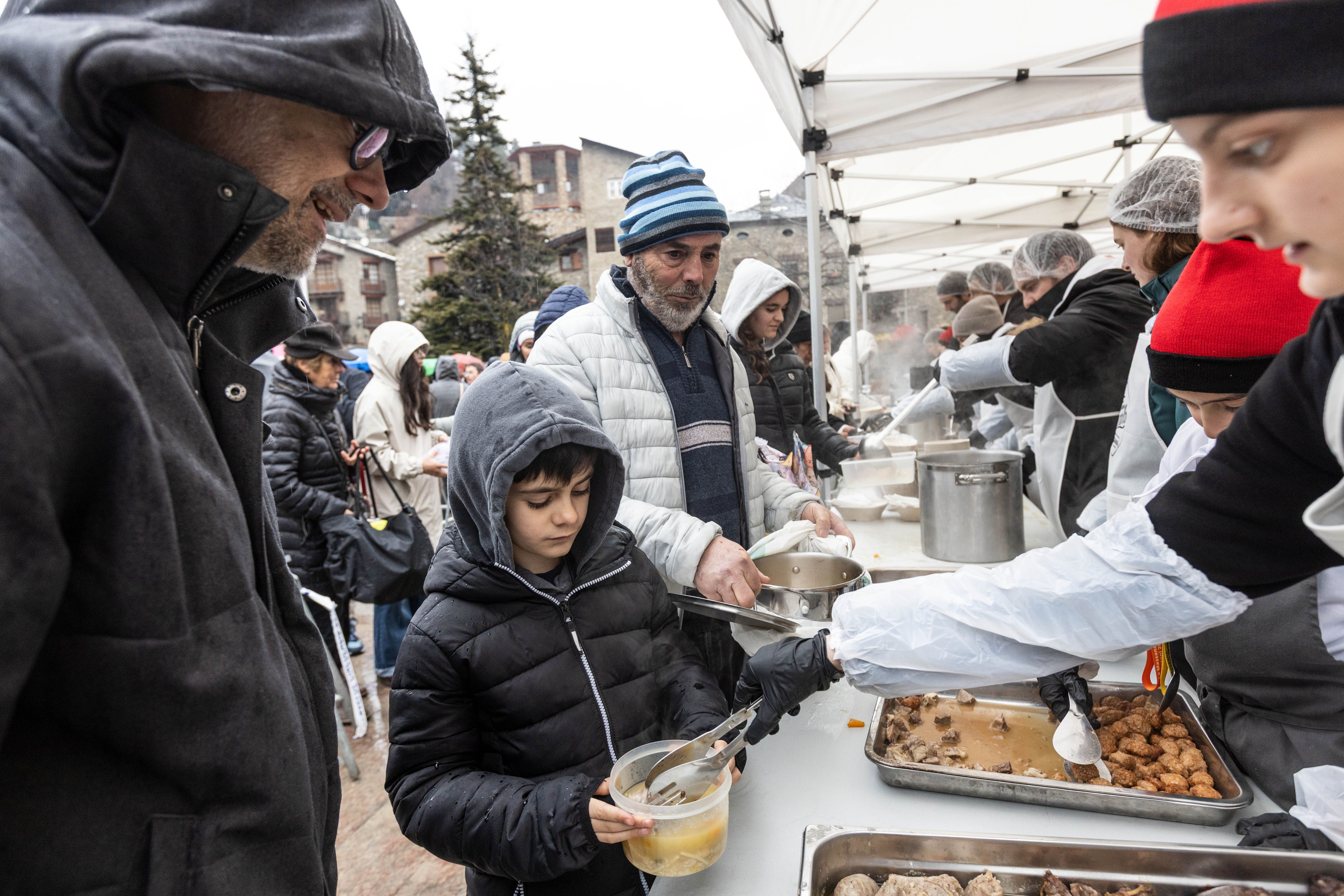 La Confraria de Sant Antoni ha rebut nombroses felicitacions per part de les autoritats locals i dels assistents que es van congregar a la plaça de l’Església per commemorar el patró de La Massana. Aquesta edició ha destacat per una participació rècord, tant pel volum d’escudella servida com per l’increment significatiu en la col·laboració ciutadana.