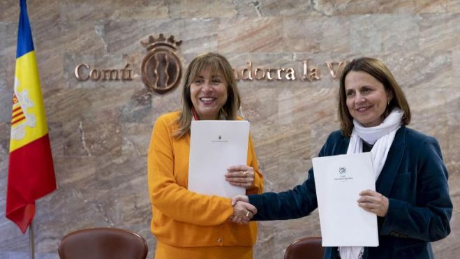 Les cònsols majors d’Andorra la Vella i Escaldes-Engordany han signat aquest migdia un protocol d’acord sobre les zones d’administració única (ZAU) de les dues parròquies. Conxita Marsol i Rosa Gili es comprometen en aquest document a suprimir el règim d’indivisió vigent sobre les ZAU d’Andorra la Vella i d’Escaldes-Engordany, perquè cada Comú, de forma independent, pugui administrar-les i exercir-hi les seves competències en les mateixes condicions que el terreny comunal propi.