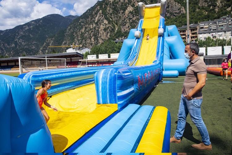 L’Aquaparc d’estiu torna per tercer any consecutiu a l’Estadi Comunal Joan Samarra Vila com una alternativa lúdica i refrescant per als infants i joves. Aquest any amplia quinze dies els dies d’obertura i estarà en funcionament de dimarts a dissabte de 10 a 14 hores i de 15 a 19 hores a partir d’avui i fins al 21 d’agost. Per la Festa major d’Andorra la Vella també obrirà el diumenge 8 d’agost.