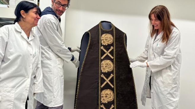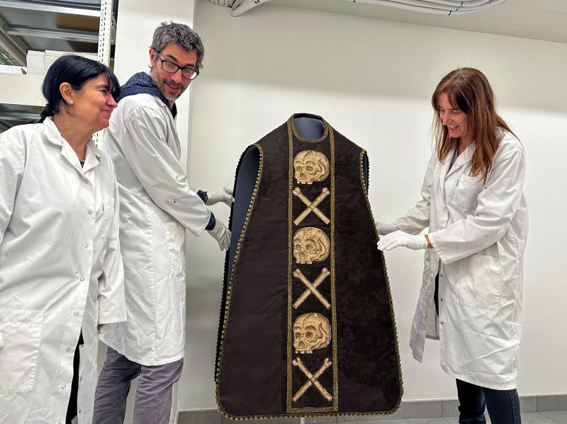 A més de la restauració de la casulla pròpiament dita, el taller també ha elaborat un suport de conservació i exposició a mida. Això permetrà que la peça, que de moment es troba a les reserves de Patrimoni Cultural, pugui ser exposada més endavant al públic. Així, està previst que aviat es pugui exposar a l’antic Hotel Rosaleda, seu del Ministeri de Cultura.