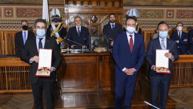 El cap de Govern i el ministre de Finances han rebut aqueta tarda la distinció d’honor de la Gran Creu Eqüestre de l’Ordre de Santa Àgata de la República de San Marino per part dels Capitans Regents de San Marino, Gian Carlo Venturini II i Marco Nicolini I.