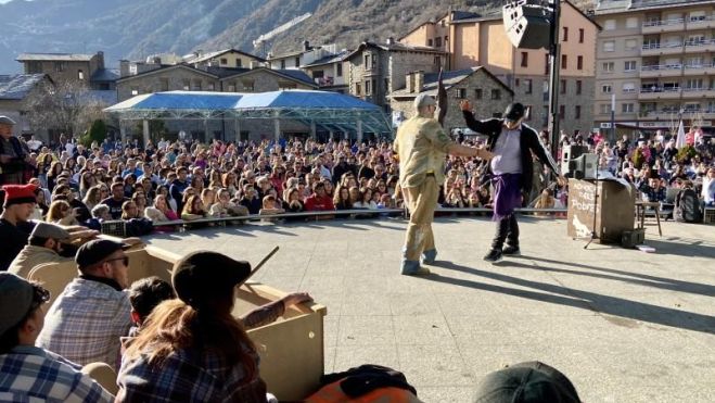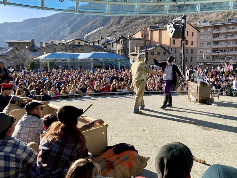 El Judici dels Contrabandistes del Carnaval d’Encamp ha omplert un any més la plaça dels Arínsols deixant escenes plenes d’humor i comicitat.