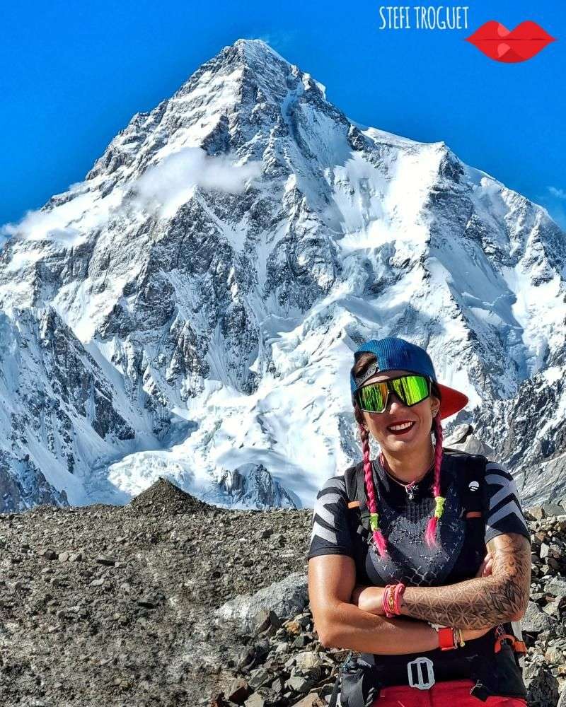 Per als que no la coneguin, la trajectòria de l’Stefi Troguet (1992) comença amb la criança en natura, a Andorra, i la dedicació al món de l’esquí com a entrenadora i també monitora de telemarc. L’octubre de 2016, amb vint-i-quatre anys, va fer el cim més alt d’Àfrica, el Kilimanjaro (5.895 m), a Tanzània, i des d’aleshores no ha deixat de fer ascensions, entre les quals destaquen els cims nepalesos del Dhaulagiri (8.167 m), el març del 2021, o el Manaslu (8.163 m), el 2019. El mateix any va coronar el Nanga Parbat (8.126 m) i, després de cinc vuit mil, la seva ambició sembla no tenir límits.