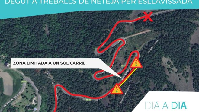La utilització d’una grua de grans dimensions en els treballs obliga a ocupar bona part de la via i impedeix el trànsit de vehicles durant la jornada laboral.Fora de l’horari de treballs i durant els caps de setmana, el trànsit es restablirà de manera parcial, amb pas alternatiu regulat per semàfors. Els serveis tècnics supervisaran l’evolució de les obres per garantir la seguretat de la circulació.Reobre parcialment la carretera de la Comella el cap de setmana