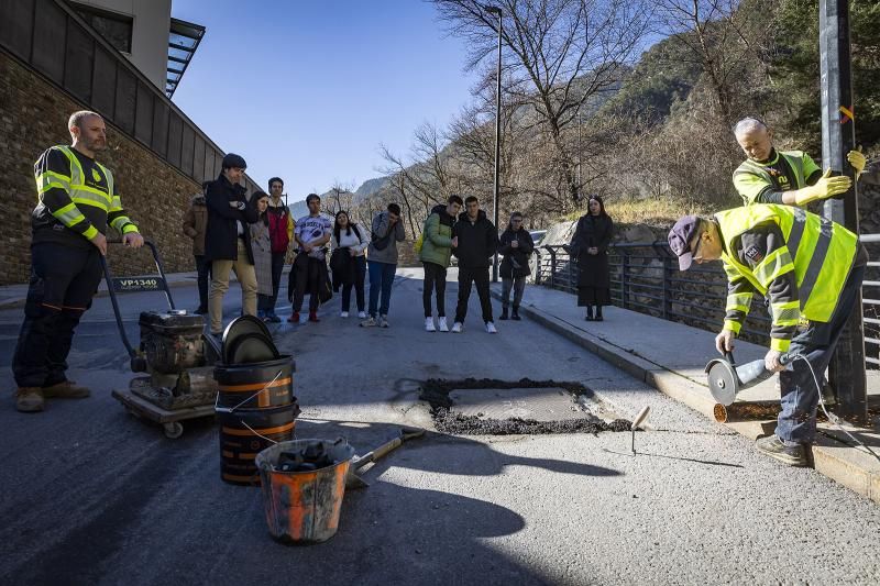 Els cònsols major i menor, Sergi González i Olalla Losada, i la directora de l’àrea d’atenció sociolaboral de la Fundació, Dolors Martínez, van donar la benvinguda als participants del programa i els van animar a conèixer les diferents tasques que fan els departaments. Alhora, van agrair als operaris del Comú el treball que duen a terme diàriament per mantenir els diferents serveis de la parròquia.