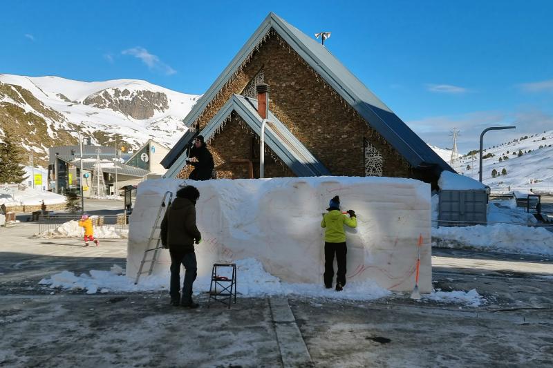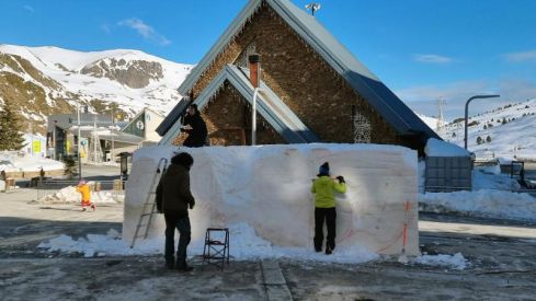 El Pas de la Casa acull des d'aquest matí l'inici dels treballs perquè tres artistes andorrans, Emma regada, Arnau Orobitg i Itziar Bádenas, converteixin un gran bloc de neu de 20 tones i 24 m3 en una figura monumental, i efímera, que es finalitzarà diumenge, després de tres dies de feina a la plaça de l'Església.