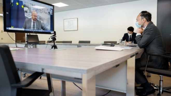 El cap de Govern, Xavier Espot, acompanyat pel secretari d'Estat d'Afers Europeus, Landry Riba i l'ambaixadora d'Andorra a la UE, Esther Rabasa, s'han reunit aquest dijous telemàticament amb el president del Consell Europeu, Charles Michel, per tractar l'agenda de negociació per a l'Acord d'associació i les relacions d'Andorra amb les institucions europees. Xavier Espot i Charles Michel han expressat la confiança mútua existent i han coincidit en la importància i la necessària col·laboració dels Estats membres en el desenvolupament de l'Acord d'associació.