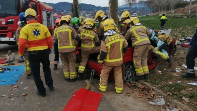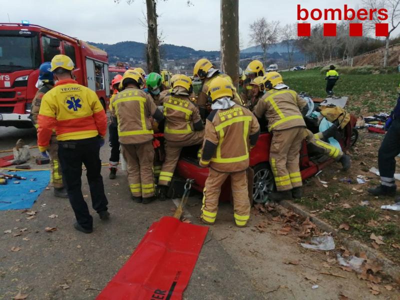 4 ferits greus en xocar el cotxe contra un arbre a Vilanova del Vallès