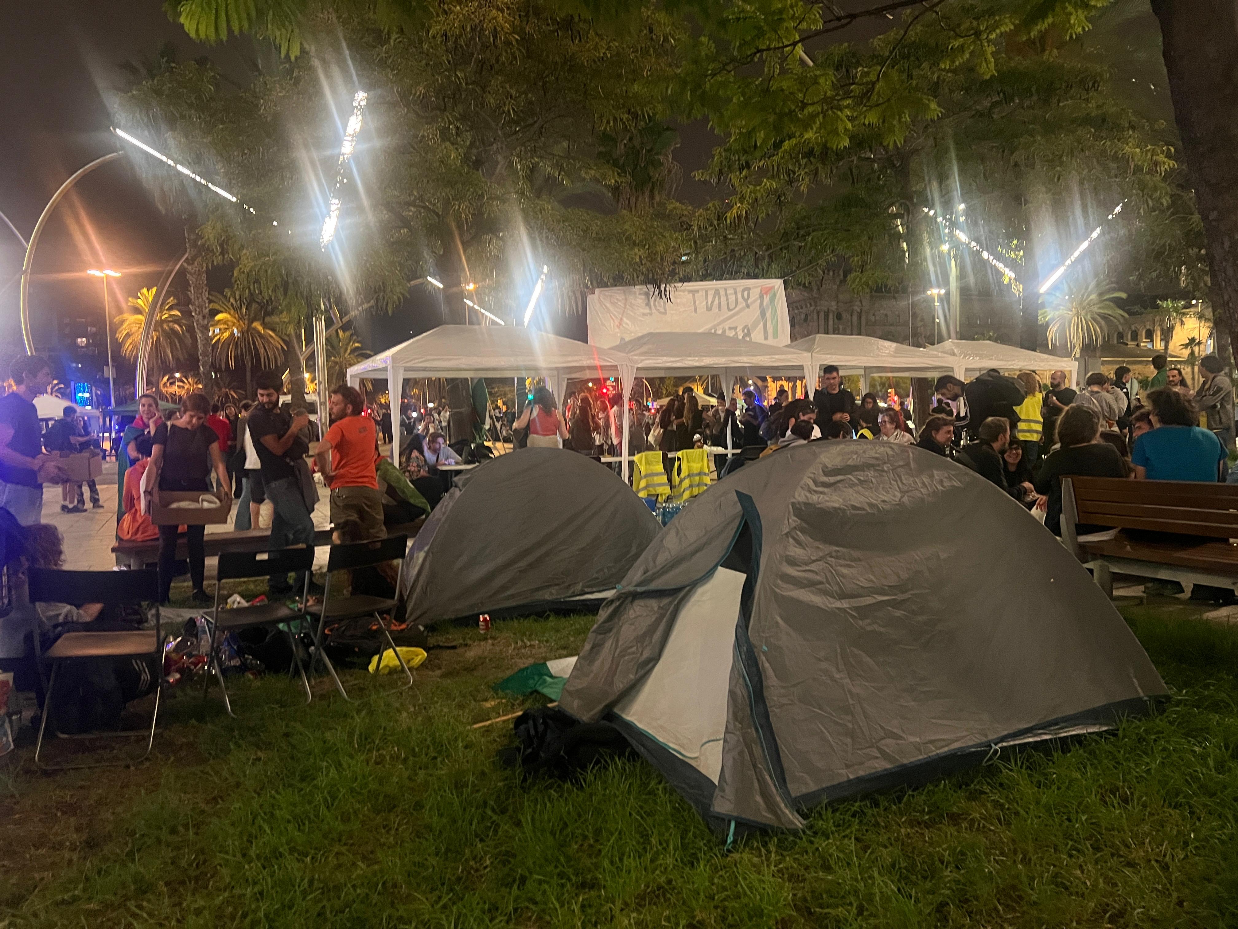 La decisió d’aixecar el campament es va prendre ahir a la nit en assemblea, on també es va acordar intentar bloquejar el port de Barcelona com a mesura de pressió per exigir la fi de les relacions comercials amb Israel. Les primeres tendes de campanya i carpes de serveis —una desena aproximadament— ja han estat instal·lades, amb taules d’avituallament i punts d’informació, donant forma a una protesta sostinguda i en creixement.
