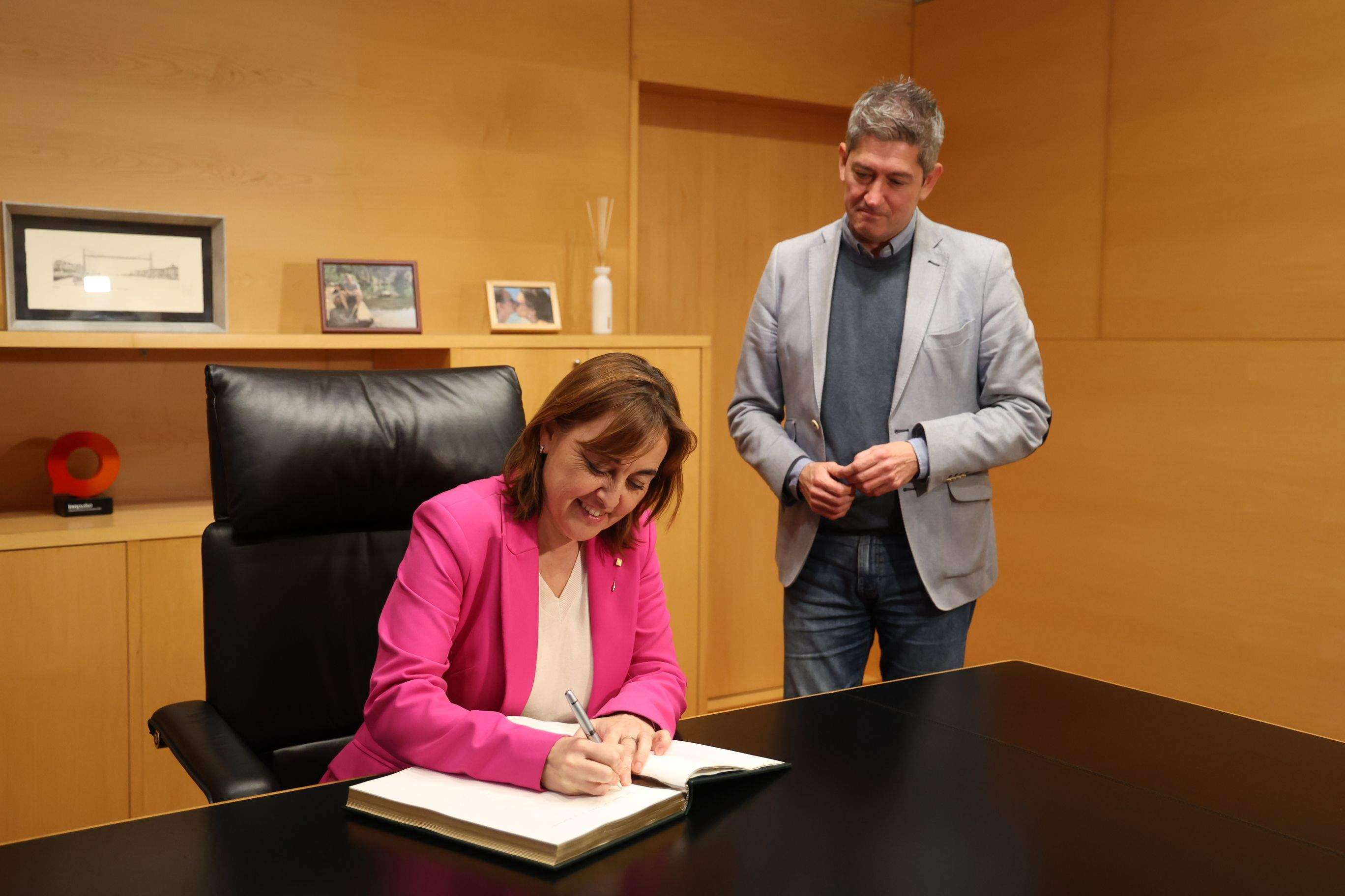 La Consellera de Territori, habitatge i transició ecològica de la Generalitat, Silvia Paneque, ha fet avui una visita institucional a L’Hospitalet per abordar amb l’alcalde, David Quirós, els temes pendents a la ciutat en els àmbits de la conselleria. Durant la visita, la consellera ha saludat els representants dels grups municipals del PSC, ERC+EUiA, PP i LHECP-C, i ha signat el Llibre d’honor de la ciutat.