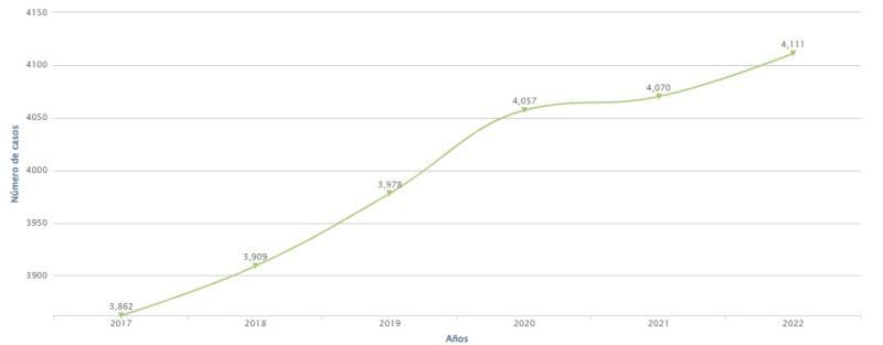 Mentre que l'any 2017 es van diagnosticar 3862 casos a la província de Barcelona, l'any 2022 el nombre ja havia augmentat fins als 4111 el que suposa un augment del 6,44%.