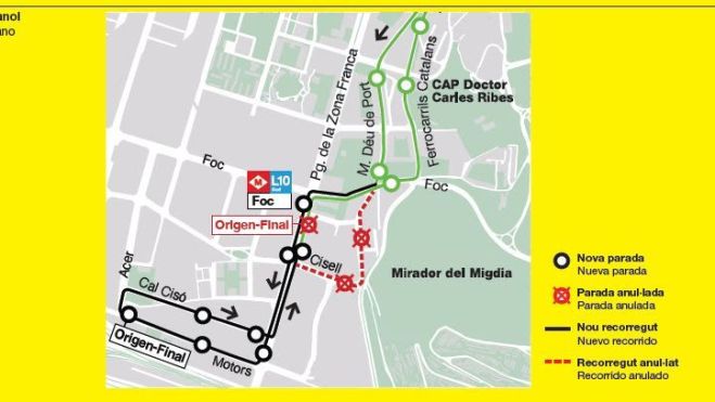 Els canvis també comporten la desaparició d’algunes parades, com les situades al carrer Mare de Déu de Port, al carrer Cisell i l’antic origen/final del passeig de la Zona Franca.