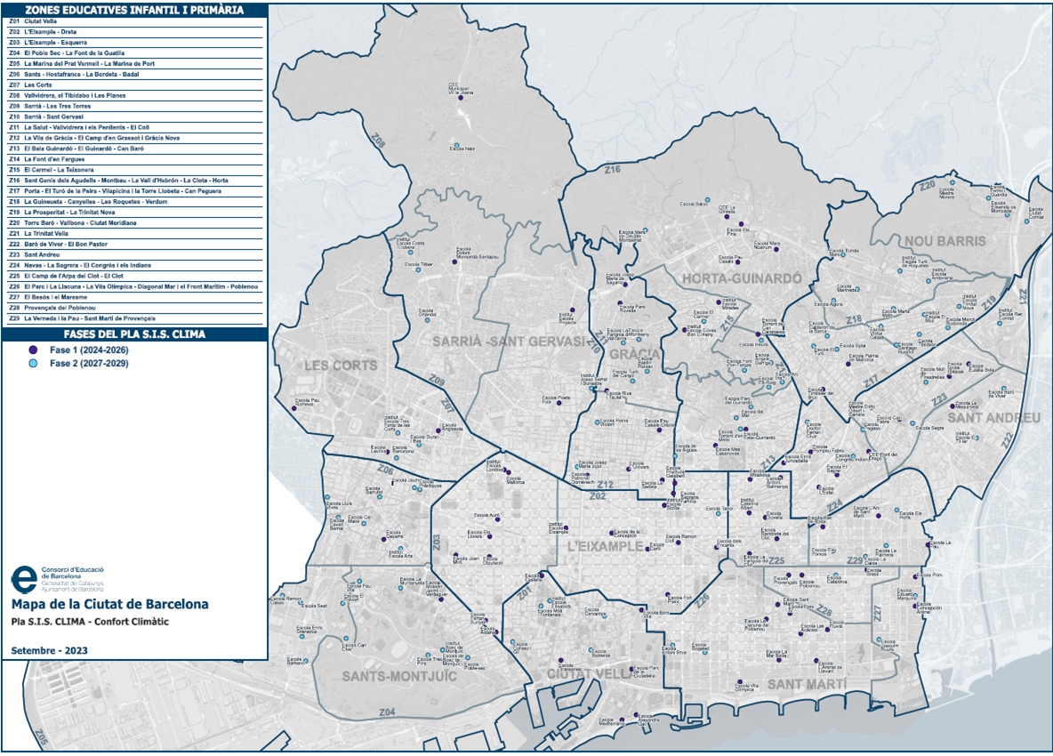 Barcelona invertirà 100 M€ en la climatització d’un total de 170 centres educatius entre els anys 2024 i 2029. Això és el que preveu el Pla Clima Escola BCN a través del Consorci d’Educació de Barcelona (CEB), i que es finançarà amb ingressos provinents de la recaptació del recàrrec sobre l’impost turístic.