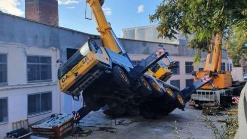 Segons ha avançat Betevé aquest diumenge, el Consorci d'Educació de Barcelona hauria explicat que el vehicle no estava ben calçat i que, mentre intentava maniobrar, una de les seves potes s'hauria ficat en un forat de terra, amb el que hauria perdut l'estabilitat i finalment s'hauria encastat contra la façana de el centre educatiu, que era nova.Les empreses contractistes han acudit al lloc per aixecar la maquinària, col·locar-la de nou al seu lloc i avaluar els danys.