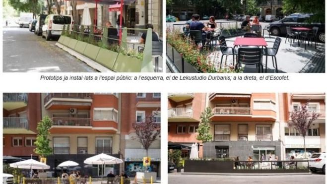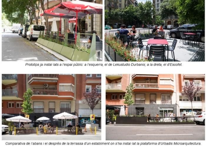 La implantació de les plataformes per a terrasses a l’espai públic ha començat. Els primers prototips d’aquests elements ja s’han instal·lat a diversos punts de la ciutat per avaluar el seu funcionament i avançar així cap a la consolidació de les terrasses i ampliacions ubicades en calçada arran de la pandèmia.Ara fa un any, el Govern municipal va engegar el procés de concessió de permisos per donar suport a la restauració, afavorir la viabilitat dels establiments i fer-ho de manera compatible amb un espai públic més viu i accessible i el compliment de les mesures sanitàries. Des d’aleshores, s’ha concedit 3.668 llicències per a noves terrasses i ampliacions excepcionals que han salvat almenys 1.875 llocs de treball, segons un estudi de la Universitat de Barcelona. I s’han prioritzat als espais de calçada com voreres, cordons d’aparcament, carrils de circulació i xamfrans.Del total d’autoritzacions, 1.588 s’han donat en espais de calçada –1.546– o en combinació de calçada i vorera –42–. L’objectiu és que aquestes puguin passar a ser definitives per donar continuïtat a l’activitat econòmica que generen, que tinguin una estètica de qualitat i un bon encaix amb el paisatge urbà i deixar enrere els elements provisionals –blocs de formigó i pivots grocs– utilitzats fins ara.Per això, fa uns mesos l’Ajuntament va començar a desenvolupar conjuntament amb diverses empreses el disseny específic d’una plataforma d’ampliació de vorera per situar-hi les taules i cadires. En concret, s’ha fabricat quatre prototips diferents amb les empreses Urbadis Microarquitectura, Escofet, Fablab Alberch i Lekustudio Durbanis. Són diferents entre ells, però reuneixen unes característiques comunes per tal de dignificar els espais on s’ubiquen les terrasses.Els mobles són modulars, i per tant adaptables al número de taules i cadires de cada llicència. Les plataformes s’integren fàcilment en els diferents ambients, i es col·locaran de manera prioritària davant del local. Són totalment accessibles des de la vorera, segures, resistents a la intempèrie i de manteniment fàcil. Estan fetes de microformigó, fusta tractada o materials petris i incorporen verd en el perímetre.