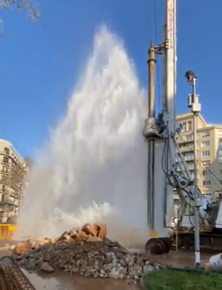En aquest tram, on s'estan realitzant obres, ha començat a sortir aigua disparada.
