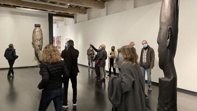 En plena pandèmia, i tot de gent fent cua davant l’exposició de Jaume Plensa a la galeria Senda, de Barcelona.