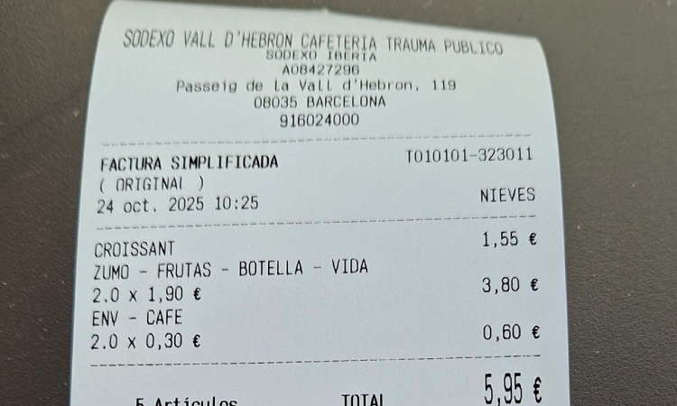 El cas, denunciat per una usuària a la xarxa social X, ha obert el debat sobre els preus dels serveis a l'hospital com la cafeteria o el pàrquing