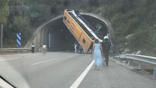 Un autobús s’ha accidentat aquest dimarts al matí a l’autopista C-32 en un túnel entre Pineda de Mar i Tordera, al quilòmetre 125,7. El vehicle ha patit una col·lisió a la boca d’un túnel i ha quedat gairebé en vertical, cosa que ha obligat a tallar la via en direcció nord.