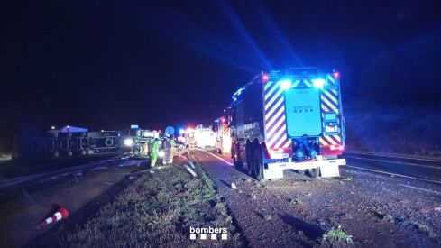 Els bombers van excarcerar el conductor, que havia quedat atrapat mecànicament dins del vehicle, i van extingir el foc que s’havia produït a una de les rodes del tràiler.